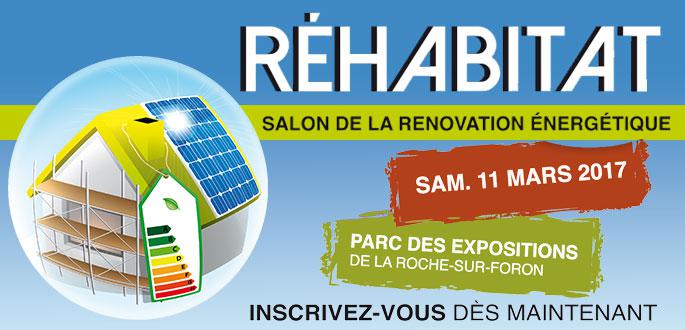 La 2e édition du salon Réhabitat du Genevois français, organisée par les collectivités, se déroulera samedi 11 mars 2017 au parc des expositions de la Roche-sur-Foron. Les inscriptions exposants pour les professionnels de la rénovation énergétique sont ouvertes : à vos agendas !