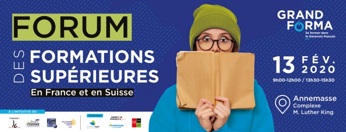 Le jeudi 13 février, le Forum des formations supérieures Grand Forma revient pour une deuxième édition à Annemasse (Complexe Martin Luther King). Au programme pour les lycéen(ne)s ou jeunes diplômé(e)s : 50 établissements de la région, de France et de Suisse, présents pour vous parler de leurs formations, et 25 conférences sur les différents parcours de formation.
